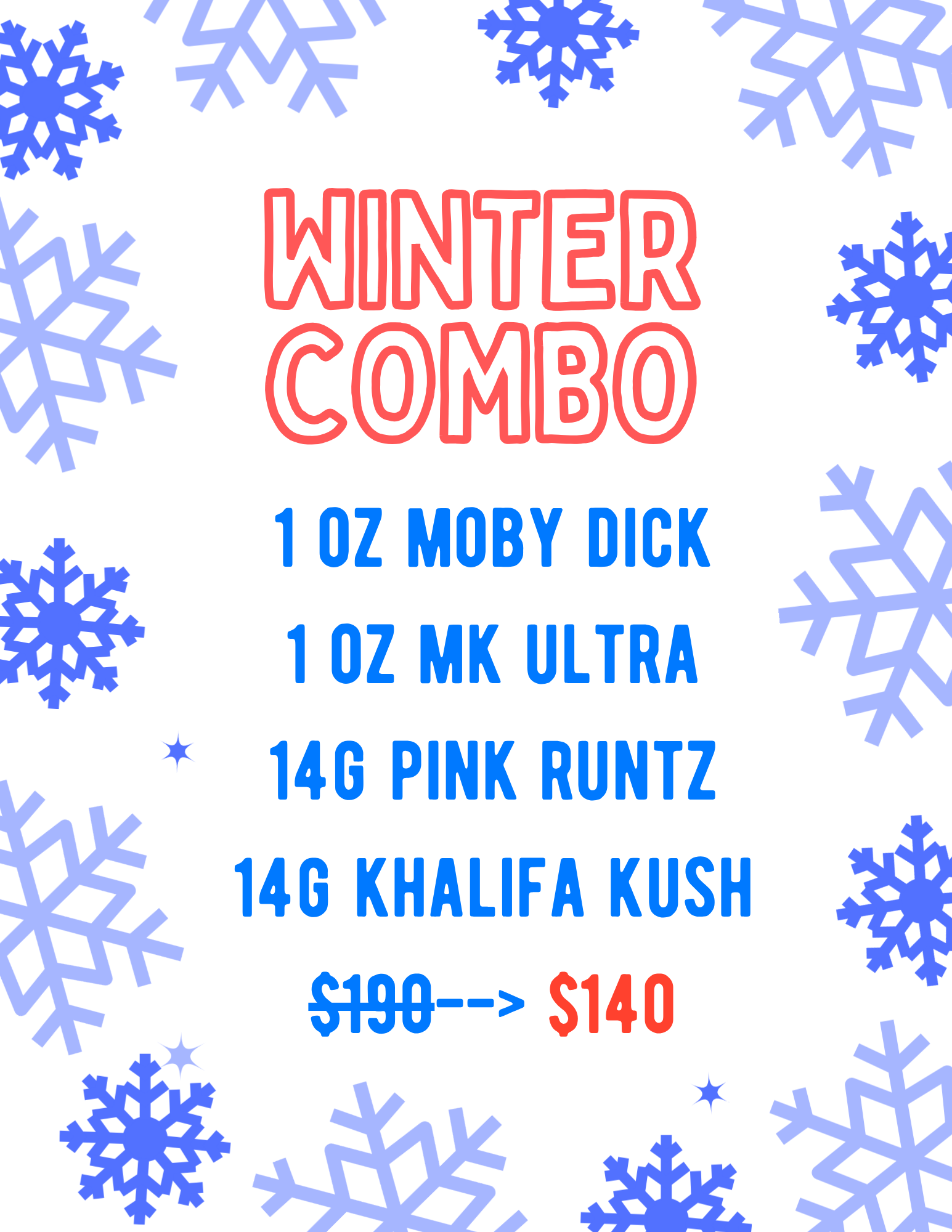 The following is for Winter Combo. Everything is fixed and no substitute.